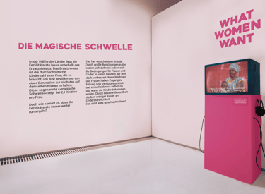 This concept translates global demographic change and its cultural, social and environmental implications into a multi-layered, participatory exhibition. Inspired by Atlas der Zukunft, demographic data becomes tactile, interactive installations communicated through diagrams, illustrations and mock-ups.
