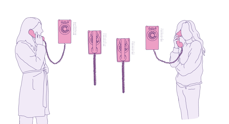 A row of rotary telephones shares personal accounts of encounters with firefighters. The low-tech interface foregrounds interpersonal connection and everyday storytelling rather than heroic imagery.