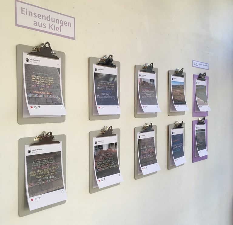 Hey Sexy! is an exhibition developed with Catcalls of Kiel and Chalk Back Germany e.V. about catcalling and sexual harassment in public space. Educational content and participatory elements invite visitors to share their own experiences while maintaining a safe, non-triggering environment.